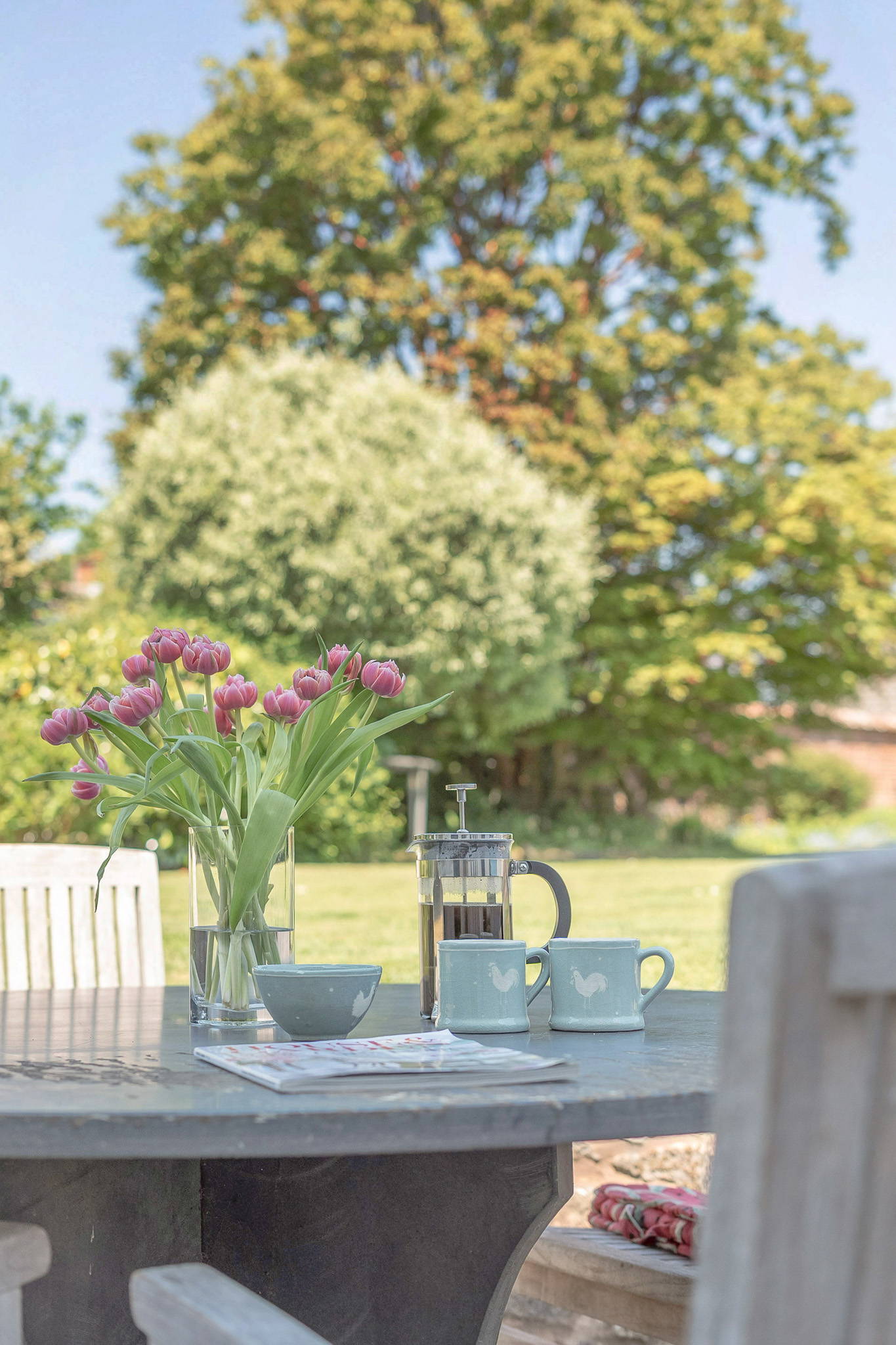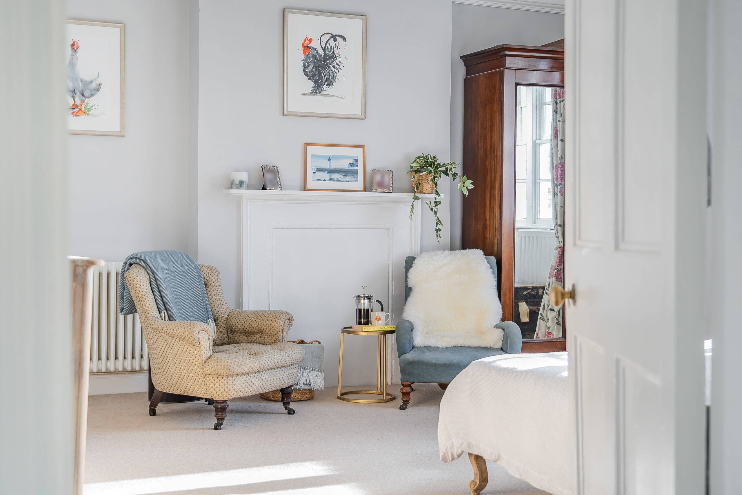 The property is privately tucked away behind a walled and gated perimeter. Stepping through the pedestrian gate — a unique, eye-catching and circular gate, of Asian origin, that was installed by the explorer Colonel Fawcett, who once lived in the property — the double fronted facade is immediately apparent, with the grand front door at its centre. As you enter, the roomy hallway leads right through to the stairs, with two doors on either side opening into the various reception rooms. To the left, both doors lead into the drawing room / dining room, complete with a gorgeous open fire at the drawing room end and doors to the garden at the dining room end. Across the hallway is the sitting room, with a large woodburner.
