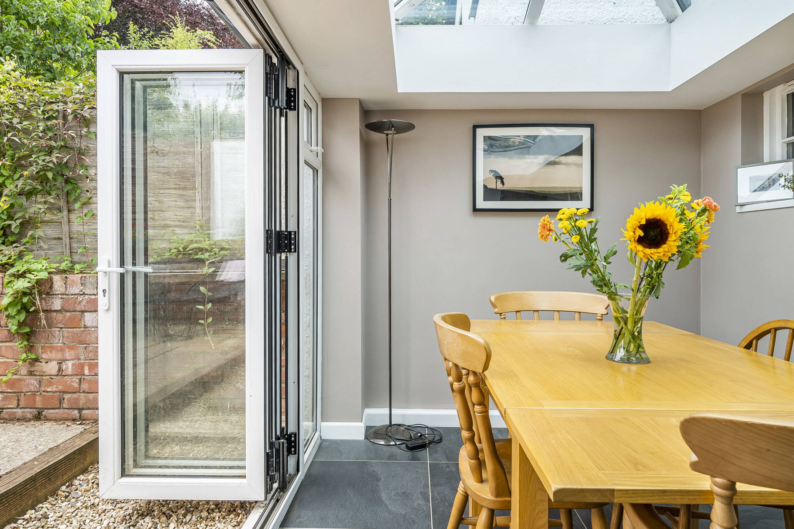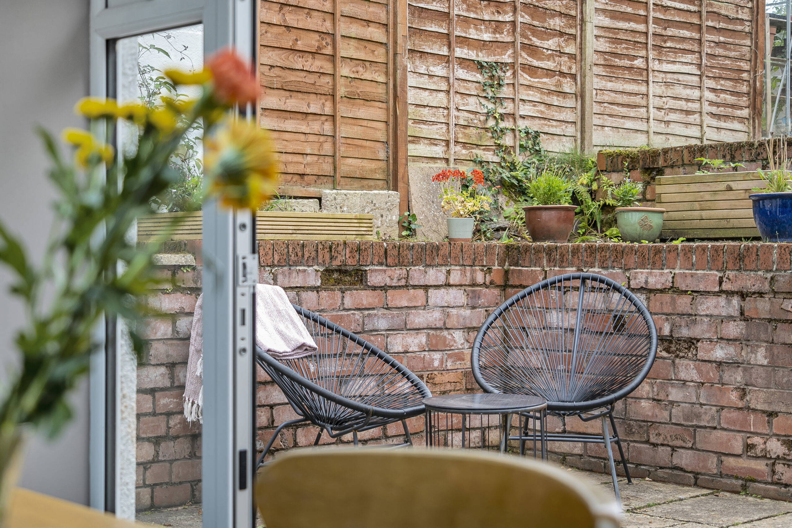 Stepping into the property off Exeter Road, the entrance hallway presents a really convenient area for muddy shoes, dogs and the like. The downstairs WC is found here, as well as the door into the sitting room, which is complete with character beams and with a large woodburner positioned in an attractive stone surround feature fireplace. Heading through into the kitchen, a recently fitted skylight ensures natural light pours over the charming kitchen, with its oak worktops and Belfast sink. Contributing further to the bright space is the dining room that sits off the kitchen. A room that has the flexibility to be utilised in a number of ways, the bi-fold doors from here that open onto the patio area ensure a perfect ‘inside outside’ space. The first floor is accessed via the stairs in the sitting room where you find the spacious main bedroom, shower room and second bedroom.