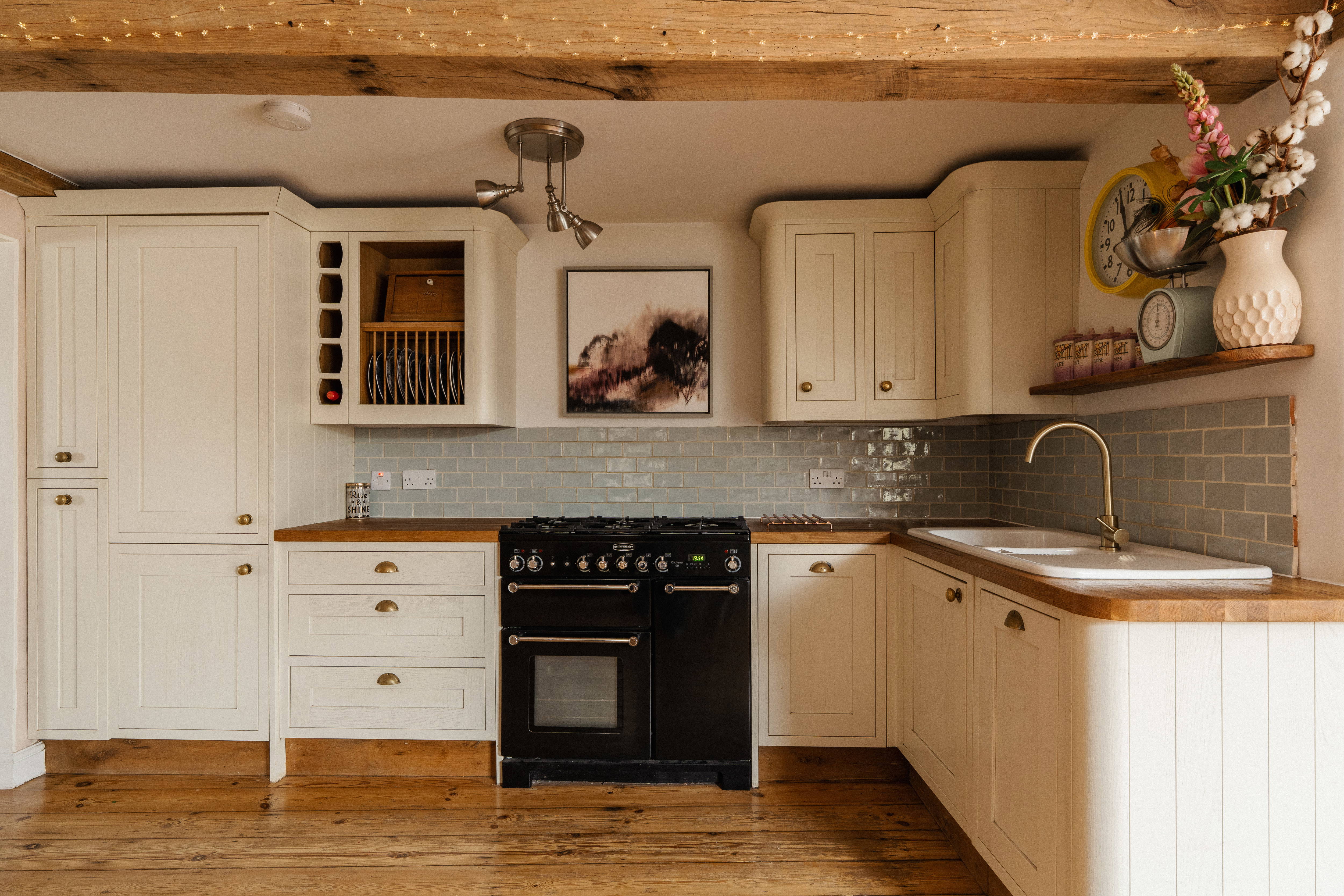 Two gates open from King Street, offering alternative entrances to the property. One guides you to the front door, which leads directly into the sitting room. The other traces the side of the property, guiding you to the more practical, everyday entrance. Through here, you enter a thoughtfully designed porch, perfectly equipped for hanging coats and slipping off wet shoes. Adjacent lies the conveniently positioned downstairs cloakroom, before the space unfolds into the striking kitchen and dining area. Charm and character immediately reveal themselves as floorboards extend beneath neutral-toned cabinetry, while exposed beams overhead add to the warmth felt throughout. A door opens from the dining area into a perfectly sized utility space and double doors open up to the rear garden.