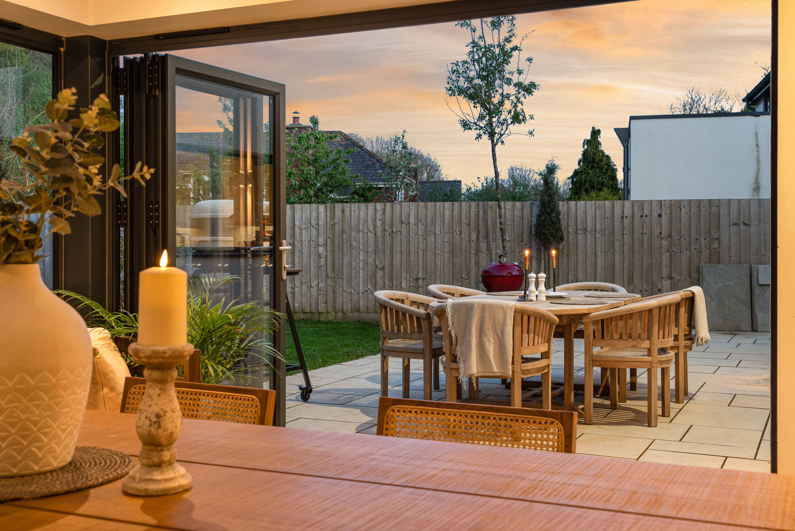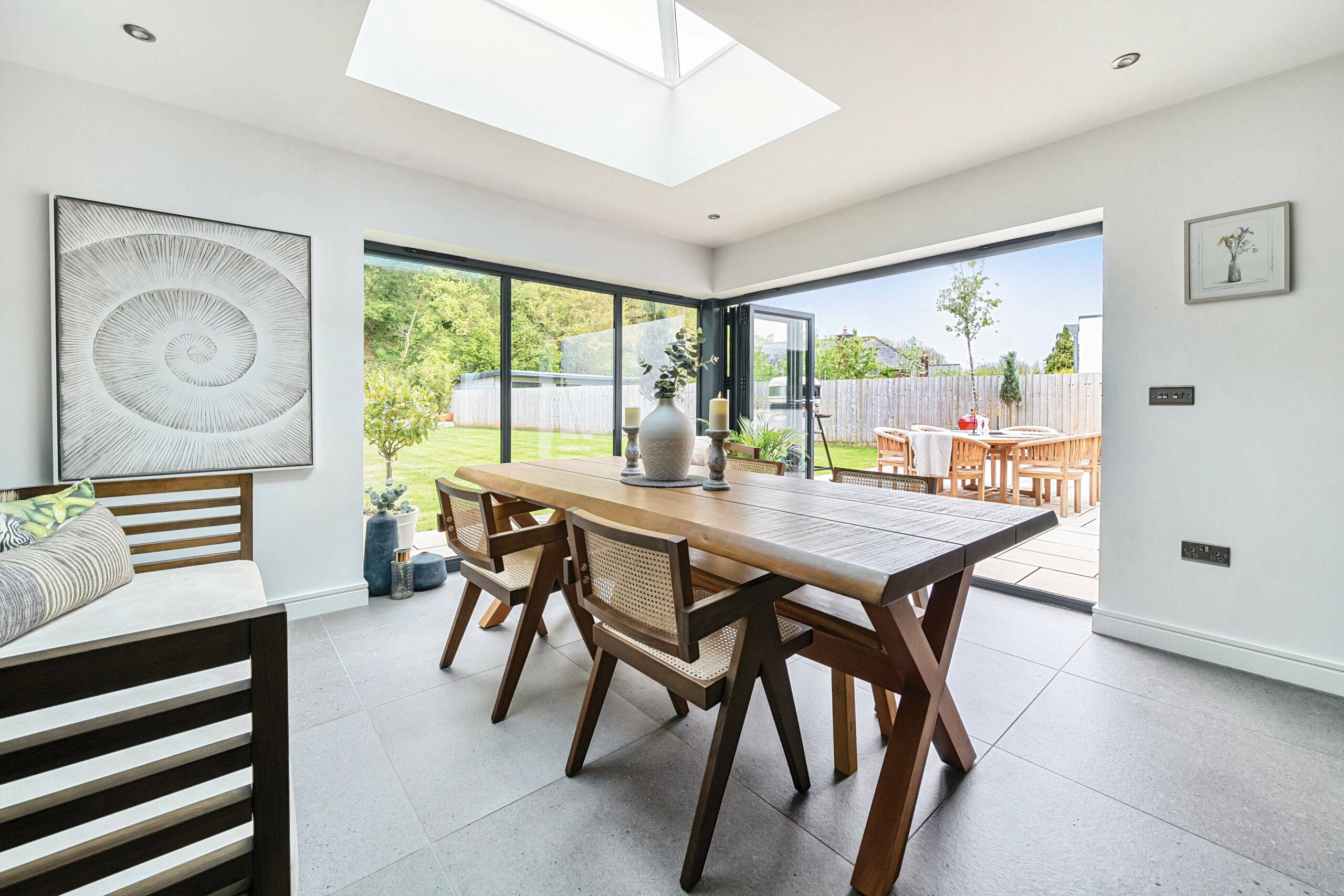 Through the hallway, you emerge into the stunning open plan main living space. The room flows from the System Six fitted kitchen, past the lounge area and onto the dining area. From here you can enjoy the view down the garden through the glazed surrounds, complete with bi-fold doors. There is also a well proportioned utility room accessed off the kitchen.